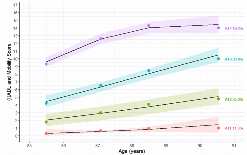 The researchers note that a sustained increase in intake of 0.1 g of protein/kg aBW/d (7 g/d of protein for a 70‐kg individual, e.g., equivalent to 1 glass [200 mL] of semi-skim milk) increased the chance of having a shallow disability trajectory (AT1) by 20% and a mild disability trajectory (AT2) by 13%. The protective effect was more pronounced in participants with protein intake of 1.0 g/kg aBW/d or more.