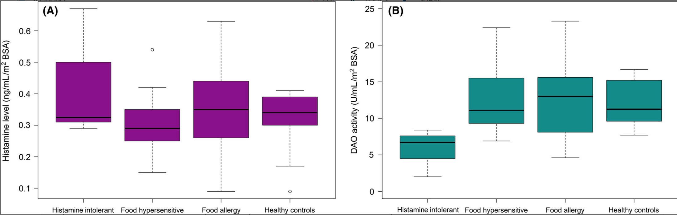 A histamine intolerance is thought to trigger a plethora of clinical symptoms after ingesting histamine‐rich foods that may be linked to the reduced activity of an enzyme, diamine oxidase (DAO), an enzyme responsible for clearing the body of histamines. No study to date has systematically assessed daily fluctuations of histamine levels and DAO activities in symptomatic patients. This study, published in Allergy, European Journal of Clinical Immunology, aimed to investigate the presence of histamine intolerance, establish day profiles of histamine levels and DAO activities, and to compare the results between patients with suspected histamine intolerance, food allergy and healthy controls. Link to full text available at the end of the study.