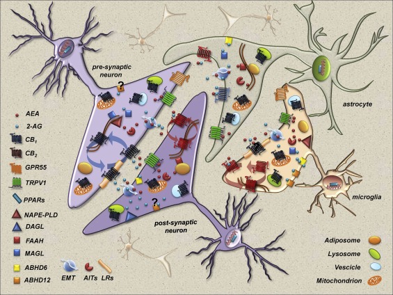 “In addition to CB1 and CB2, cannabinoids and eCBs can exert their effects engaging other non-CB receptors, including the transient receptor potential vanilloid 1 (TRPV1) channel, expressed mainly in peripheral tissues, including peripheral sensory neurons, epithelial and endothelial cells as well as immune cells (Xia et al., 2011). Other targets are peroxisome proliferator-activated receptors (PPAR) α and γ (Pistis and Melis, 2010) that belong to a family of nuclear receptors whose role is mainly to control lipid metabolism; and orphan G protein-coupled receptor GPR55 (Moriconi et al., 2010).”