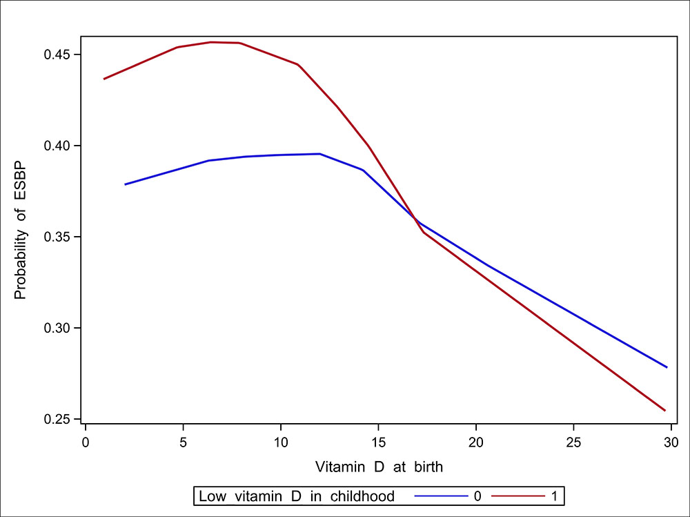 These findings highlight that both prenatal and early childhood vitamin D levels appear to play a substantial role in the development of elevated SBP, especially among those born to mothers with obesity, diabetes mellitus, or hypertensive disorders.