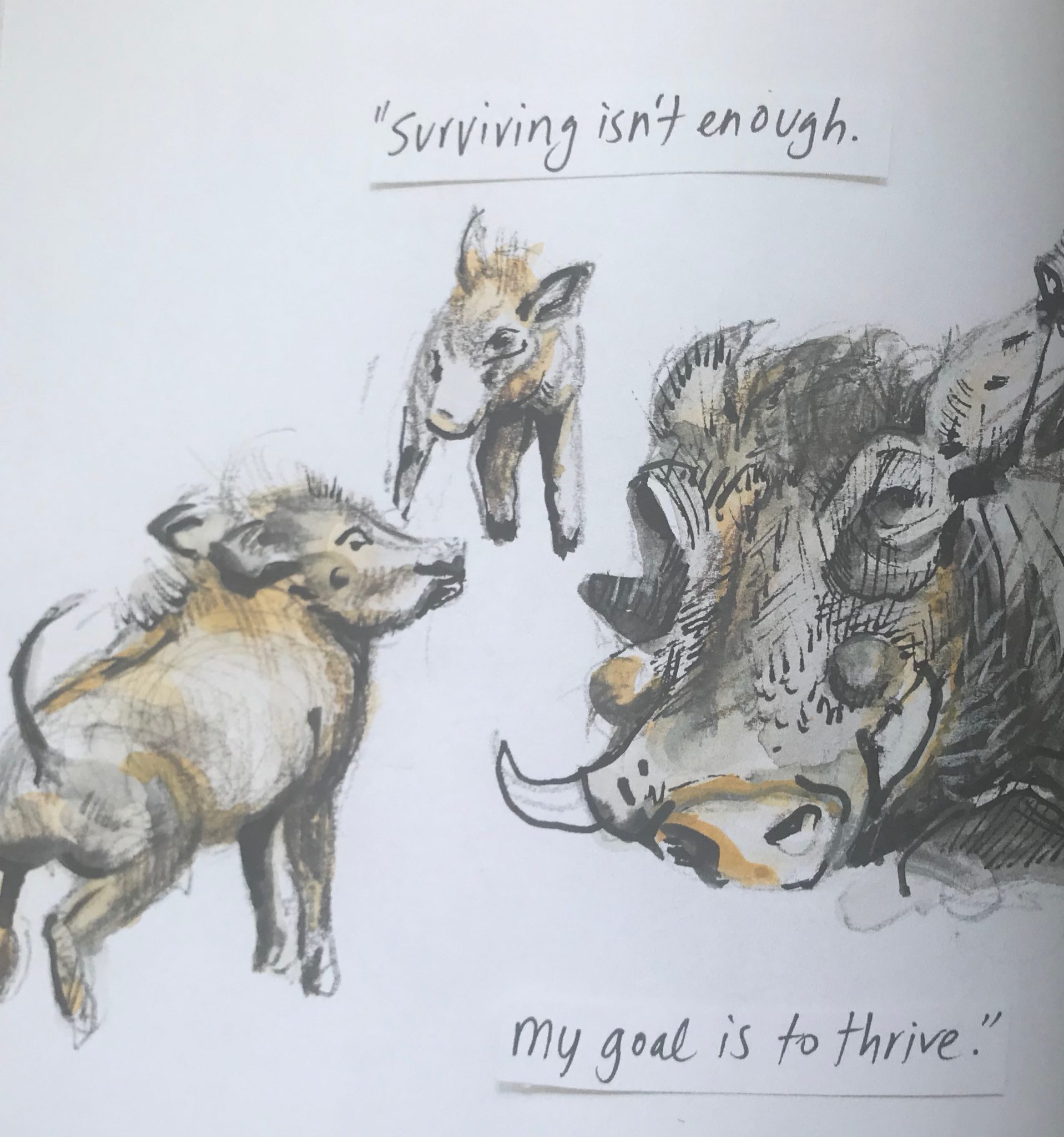 When I first read Wild Wisdom, A Warthog’s Tale, I mistakenly took it for a children’s book. Look beyond the enchanting art work and you will find it is nothing of the sort. It’s a very adult book that uncovers the private thoughts and public decisions that Laurada Byers made in her remarkable life to find clarity during incredibly stressful events. When you know her story, it’s hard to imagine how someone can survive the trauma of the murder of her husband Russell, a well-known journalist, as well as anal cancer and Parkinson’s. All the while, she started a charter school and cared for her children.