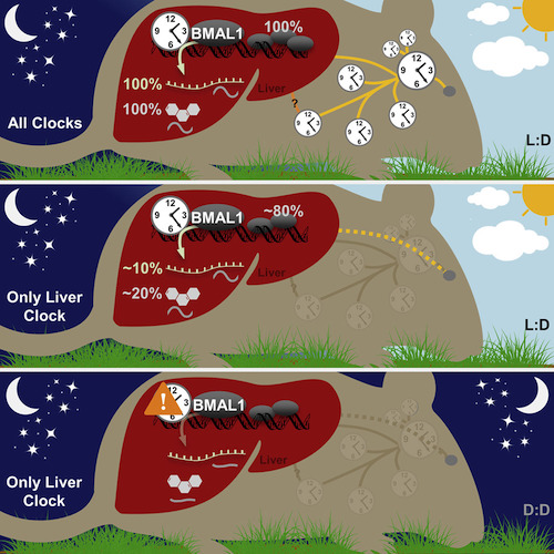 Kevin B. Koronowski, Kenichiro Kinouchi, Patrick-Simon Welz, Jacob G. Smith, Valentina M. Zinna, Jiejun Shi, Muntaha Samad, Siwei Chen, Christophe N. Magnan, Jason M. Kinchen, Wei Li, Pierre Baldi, Salvador Aznar Benitah, Paolo Sassone-Corsi. Defining the Independence of the Liver Circadian Clock. Cell, 2019; 177 (6): 1448 DOI: 10.1016/j.cell.2019.04.025