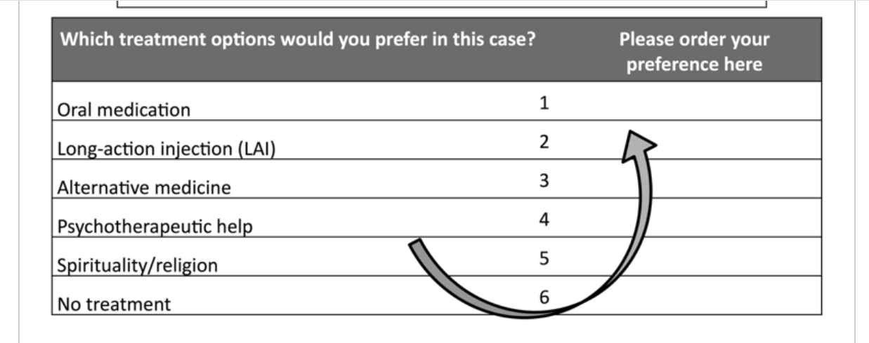 1. “Strictly conventional” for people selecting pill, LAI or psychotherapy as unique treatment option excluding ICHA or spiritual guidance.